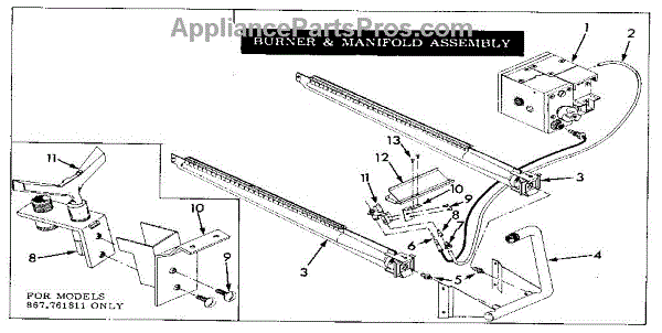Parts for Kenmore 867.761811 (867761811, 867 761811): Burner & Manifold Assembly Parts