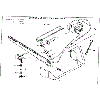 Parts for Kenmore 867.765921 (867765921, 867 765921): Burner And Manifold Assembly Parts