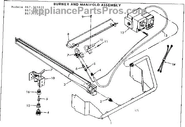 Parts for Kenmore 867.765951 (867765951, 867 765951): Burner And Manifold Assembly Parts
