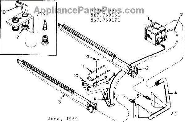Parts for Kenmore 867.769161 (867769161, 867 769161): Burner & Manifold Assembly Parts