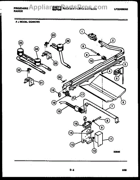Controls gas flow to range burners. Replace if regulator is worn, leaking, or damaged to restore proper gas delivery and maintain safe operation.