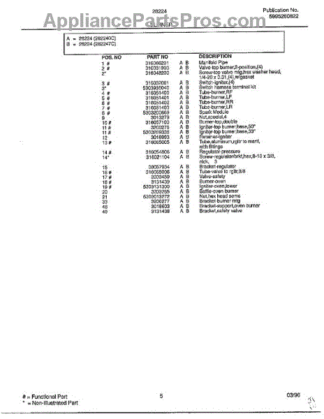 Parts for Frigidaire 282247C: Burner Page 2 Parts