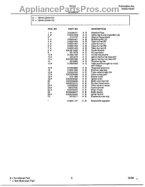 Parts for Frigidaire 284447B: Burner Page 2 Parts