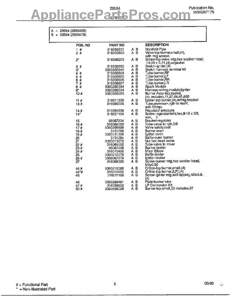 Parts for Frigidaire 285840B: Burner Page 2 Parts