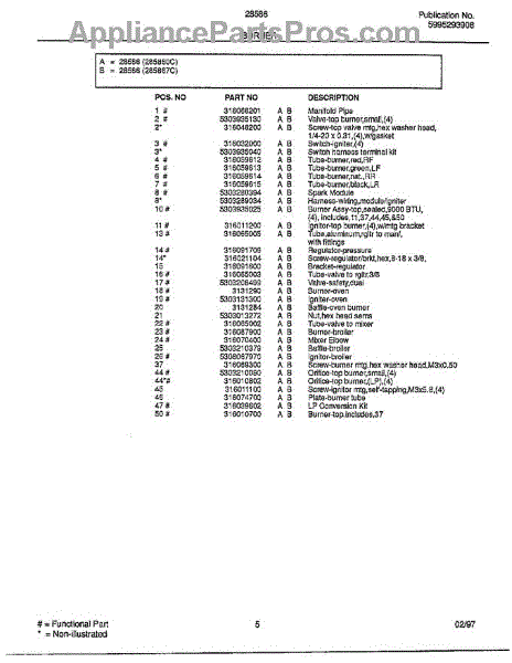 Parts for Frigidaire 285860C: Burner Page 2 Parts