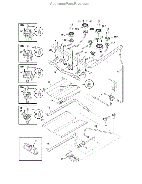 The Igniter Orifice Assembly is an OEM component for Frigidaire gas ranges. It is an integrated assembly housing both the electric ignition wire and adjustable gas orifice or restrictor needed for controlled gas flow. Symptoms of a bad ignitor orifice assembly include:
