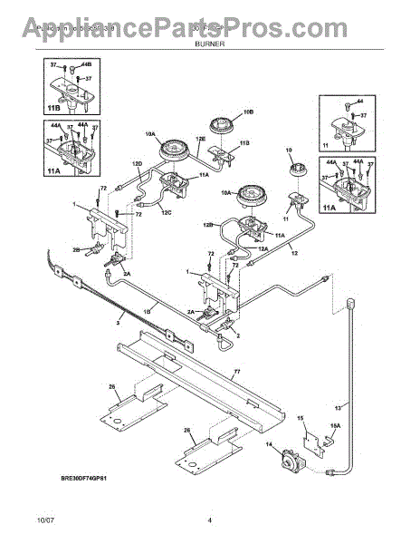 Burner base includes orifice and ignitor.