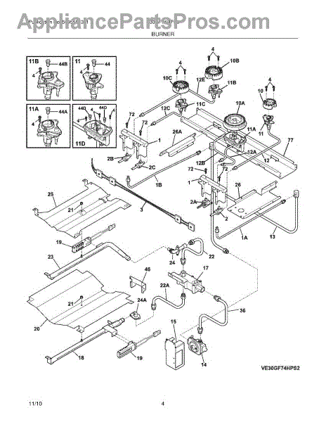 This assembly combines the spark igniter electrode with the orifice holder for a gas surface burner. It restores dependable ignition and proper gas delivery so the burner lights quickly and consistently.