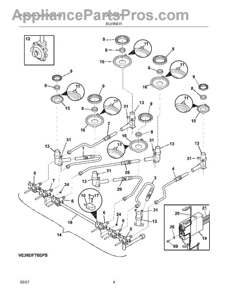 Parts for Electrolux E36DF76EPS: 05 - Burner Parts