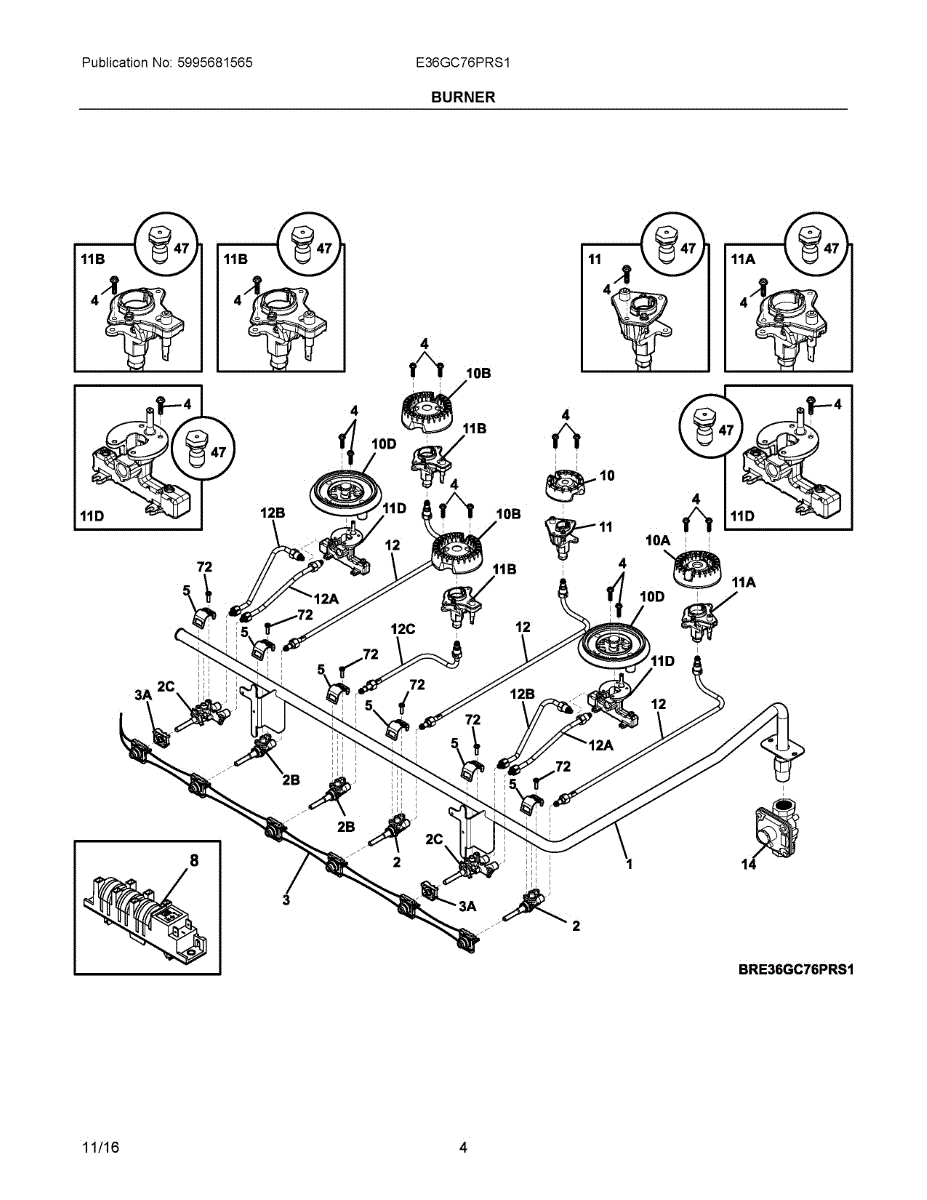 Replacement gas burner for ranges and cooktops. Restores even flame distribution when original is clogged, damaged, or worn from boilovers and daily use.