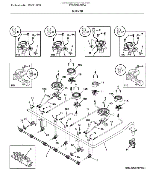 Replace a burner that won't light, produces uneven flames, or has a damaged head. This gas cooktop burner assembly typically requires 30 minutes to install.