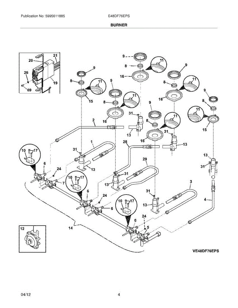 Range burner not igniting or flame uneven? This valve assembly controls gas flow to surface burners. Moderately difficult repair requiring gas line work.