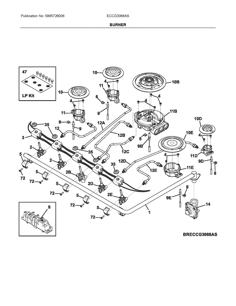 Gas supply tube for cooktops. Connects burner assembly to main gas line. Replace if tube is cracked, corroded, or leaking to restore safe operation.