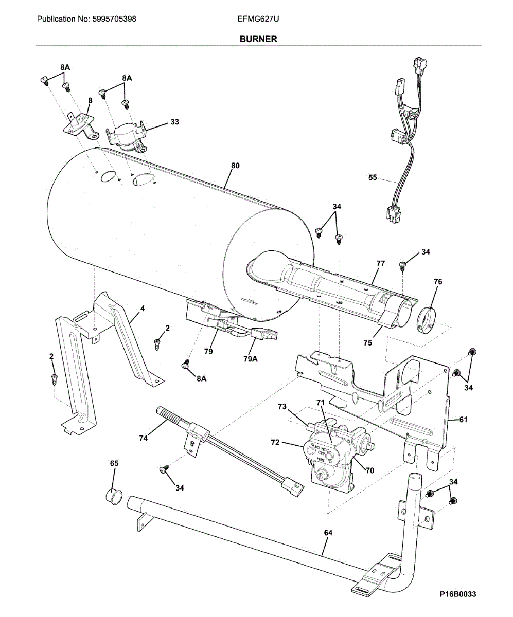 Burner orifice that meters gas flow to your dryer's burner. Replace if clogged, damaged, or wrong size for fuel type during LP/natural gas conversion.