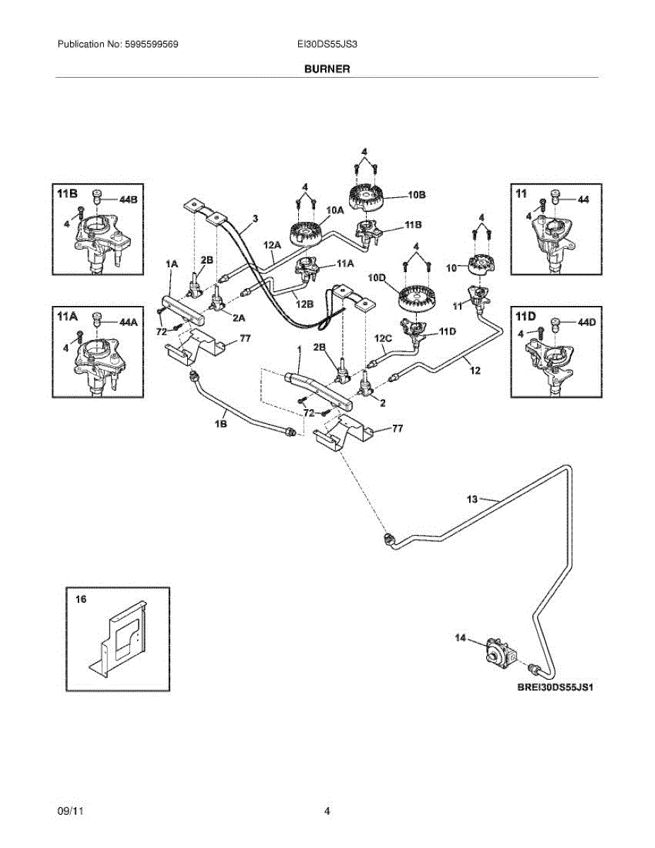 Parts for Electrolux EI30DS55JS3: 05 - Burner Parts