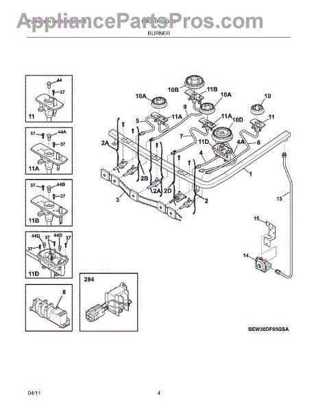 Parts for Electrolux EW30DF65GSC: 05 - Burner Parts