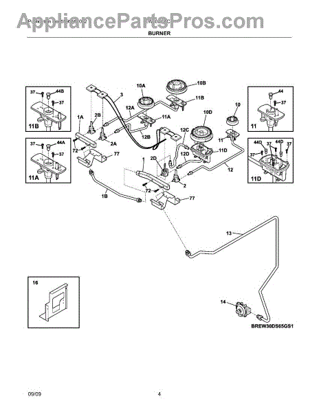 Burner base includes orifice and ignitor.