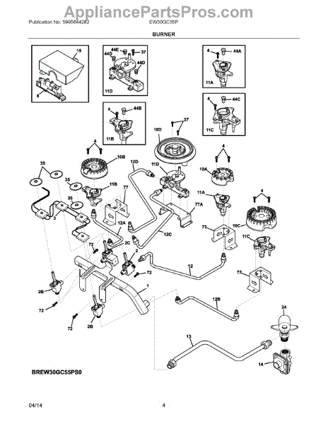 Burner orifice controls gas and air flow to cooktop burners. Replace if cracked, corroded, or when converting between natural gas and propane fuel types.