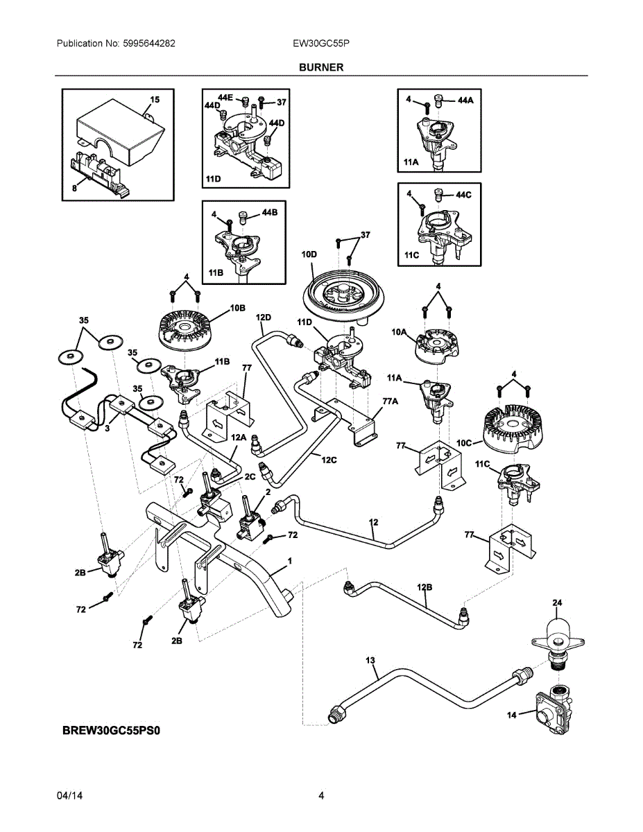 Combines spark igniter electrode with orifice holder for gas surface burners. Replace when cracked, broken, or no longer securely holding components in place.