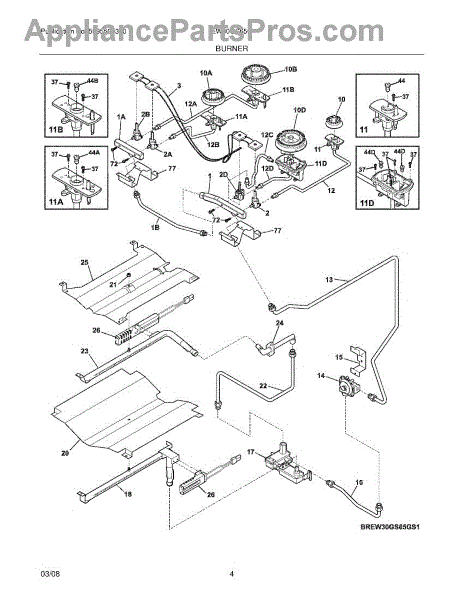 This valve controls gas flow to a range/cooktop surface burner for smooth ignition and precise flame adjustment. Replacing a worn valve helps restore reliable burner lighting, accurate heat control, and safer shutoff.