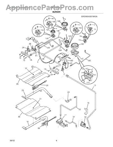 Parts for Electrolux EW30GS75KSC: 05 - Burner Parts