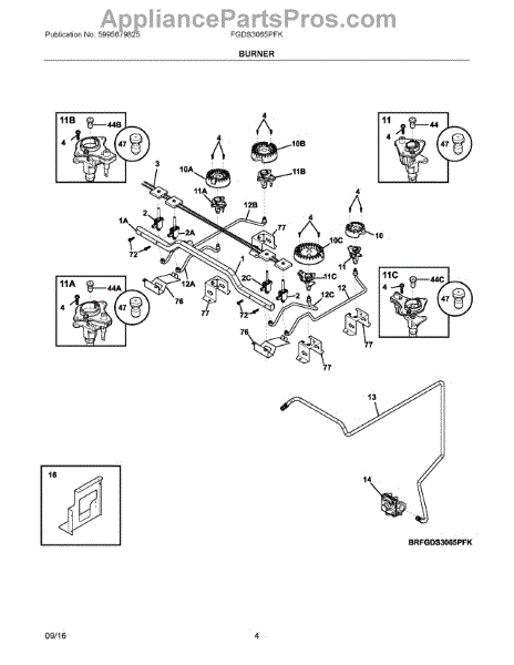 Parts for Electrolux FGDS3065PFK: 03 - Burner Parts