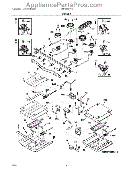 Parts for Electrolux FGGF304DPFD: 03 - Burner Parts