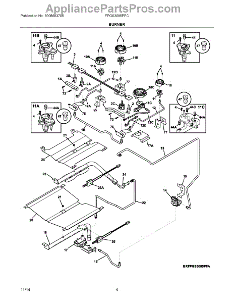 The Ignitor is an OEM replacement part for Frigidaire gas ranges. Located near the burner heads, this component is responsible for generating the electric spark required to light stove top burners. Symptoms of a faulty ignitor include: