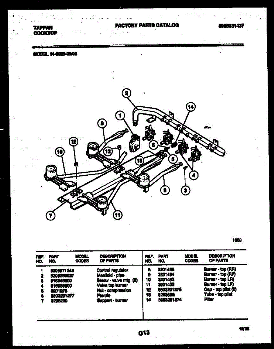 Parts for Frigidaire 14-3028-08-03: 03 - Burner Parts