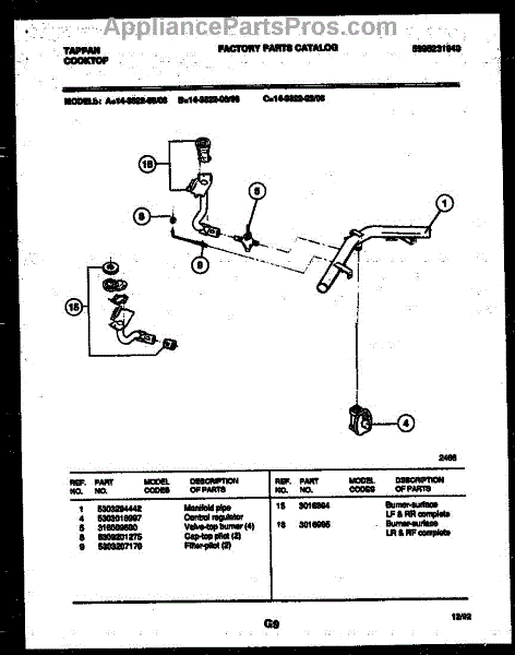 Parts for Frigidaire 14-3622-00-06: 03 - Burner Parts