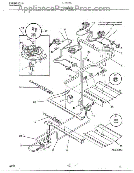 The Top Igniter Electrode is an OEM replacement part for Frigidaire gas ranges. This part provides the spark to ignite the surface burners. Causes involve repetitive heat stresses and deterioration of internal wiring over extended use. Corrosion from possible gas or moisture intrusion may also degrade electrode performance. Symptoms of a faulty top igniter electrode include: