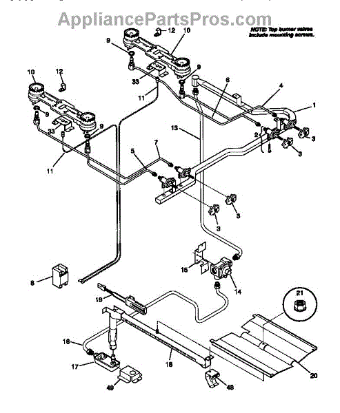 A replacement hex-head screw used to secure appliance regulator brackets and similar small components. Restores proper fastener fit so panels and brackets stay firmly attached. What it does