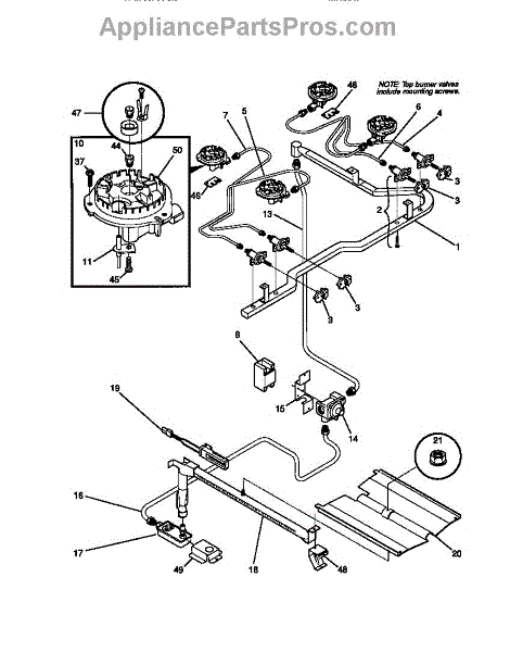 • Secures the surface burner to the orifice holder/cooktop assembly