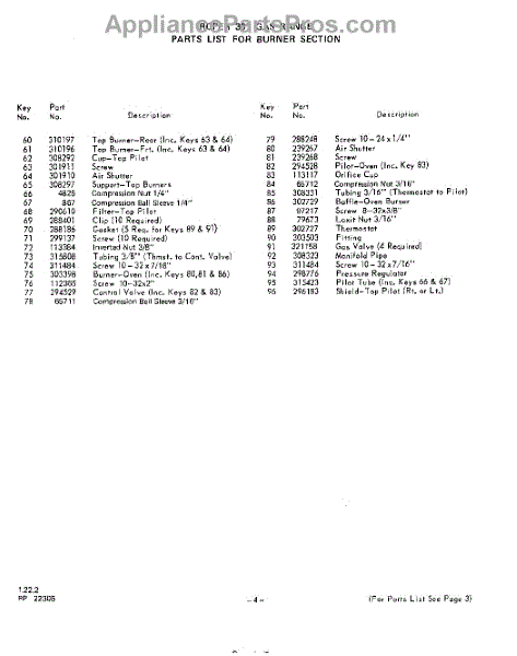 Parts for Frigidaire 30-3226-00-02: 06 - Burner Parts