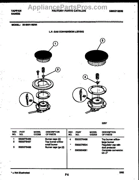 Parts for Frigidaire 30-3851-23-04: 08 - Burner Parts