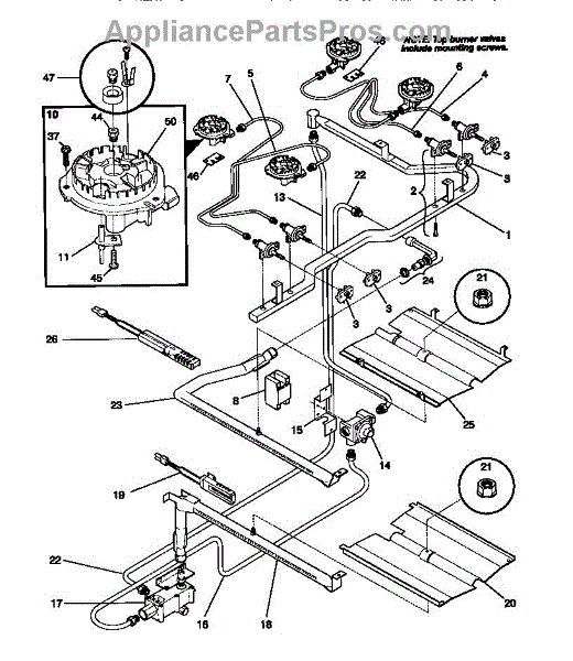 • Secures the surface burner to the orifice holder/cooktop assembly
