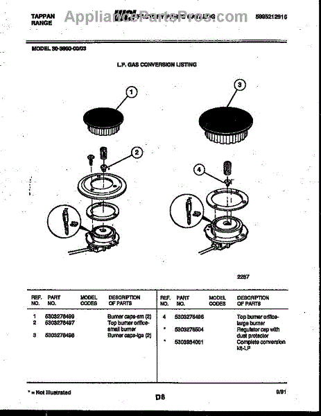 Parts for Frigidaire 30-3860-23-03: 08 - Burner Parts