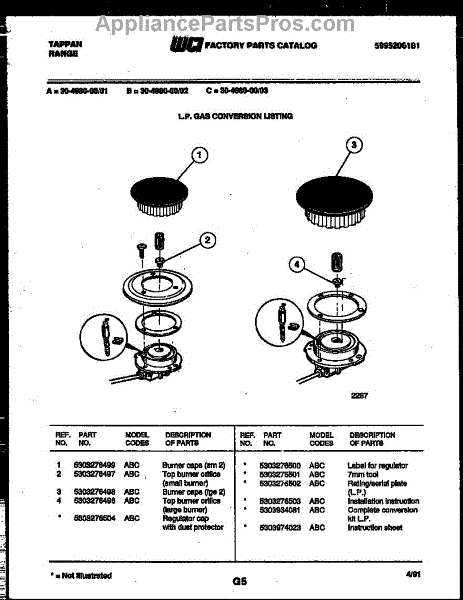 Parts for Frigidaire 30-4980-23-02: 08 - Burner Parts