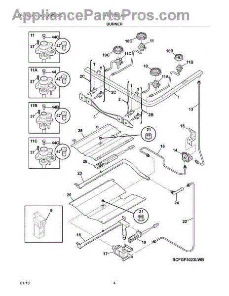 The Igniter Orifice Assembly is an OEM component for Frigidaire gas ranges. It is an integrated assembly housing both the electric ignition wire and adjustable gas orifice or restrictor needed for controlled gas flow. Symptoms of a bad ignitor orifice assembly include: