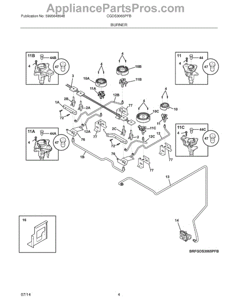Parts for Frigidaire CGDS3065PFB: 05 - Burner Parts