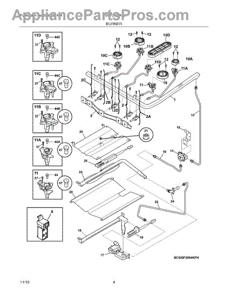 The Igniter Orifice Assembly is an OEM component for Frigidaire gas ranges. It is an integrated assembly housing both the electric ignition wire and adjustable gas orifice or restrictor needed for controlled gas flow. Symptoms of a bad ignitor orifice assembly include: