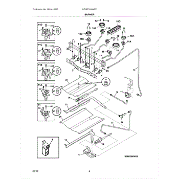 The Spark Ignition Switch & Harness Assembly is an OEM part for Frigidaire gas ranges. It is responsible for igniting the burner to produce a flame when the burner knob is turned on.