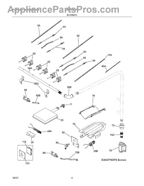 Parts for Frigidaire E36GF76GPS: 05 - Burner Parts