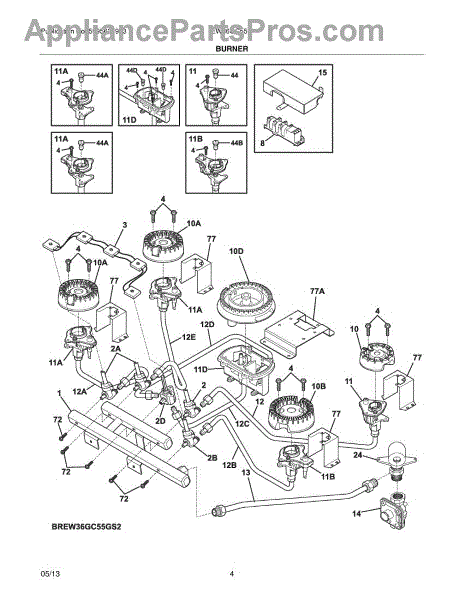 Parts for Frigidaire EW36GC55GB3: 05 - Burner Parts