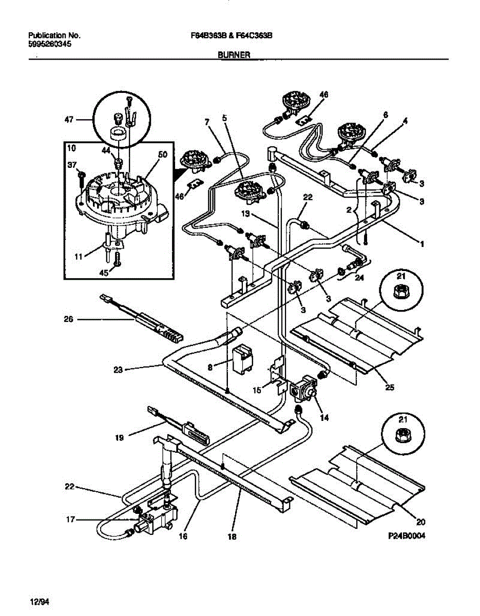 Parts for Frigidaire F64B363BWA: 03 - Burner Parts