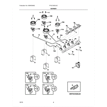 The Burner Orifice is an OEM replacement part for Frigidaire gas ranges and cooktops. It controls the mixture of gas and air delivered to each burner element.