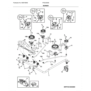 Parts for Frigidaire FFGC3026SBD: Burner Parts