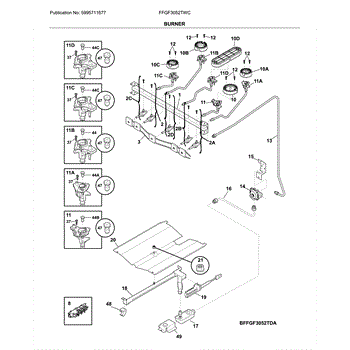 The Burner Valve is an OEM component specifically designed for Frigidaire ranges. It controls gas flow to individual burners, providing a selection of different heat levels when operating the cooktop.