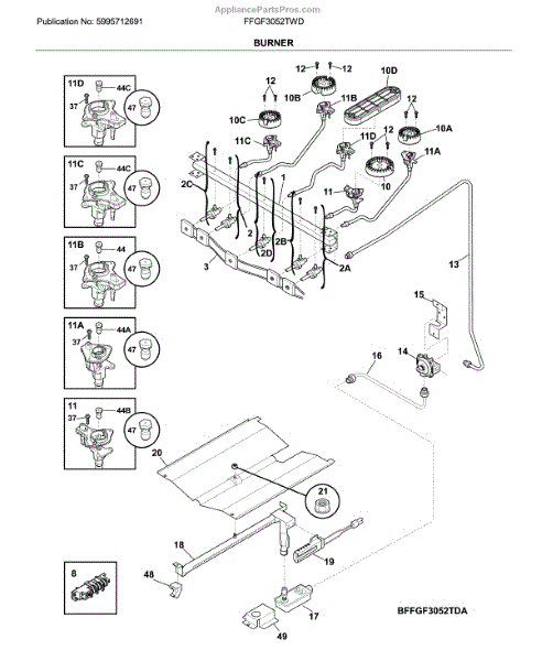 Parts for Frigidaire FFGF3052TWD: Burner Parts