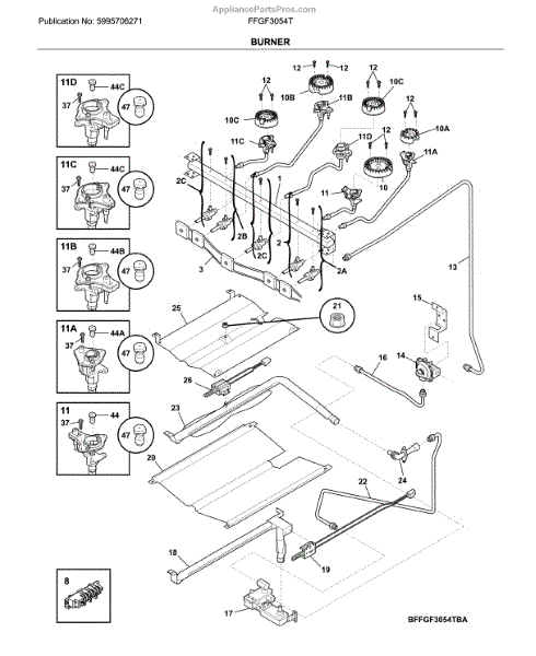 The Valve is an OEM replacement part for Frigidaire ranges. Located along the gas line leading to the oven burners, it regulates gas flow and controls burner ignitions. Proper valve function is critical for safe and efficient cooking performance.